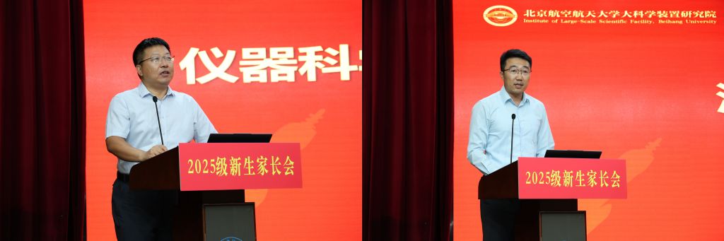 会议伊始,仪器科学与光电工程学院党委书记雷晓锋致辞,他代表学院对新同学和各位家长的到来表示衷心的欢迎,勉励同学们在量子领域学习中深耕细研,早日成长为服务国家重大战略需求的顶尖科技人才。他呼吁家校形成育人合力,通过家校之间的紧密联动、互相配合,帮助学生走好量子科技之路。沈元学院党委书记刘科生向各位新生及家长表达了最诚挚的问候与欢迎。他寄语新生要在量子科技领域“立大志、明大德、成大才、担大任”,传承弘扬以“空天报国”为内核的北航精神,争做心怀家国、深耕基础、追求卓越、领航未来的时代英才。希望与各位家长共同携手、相互协作,助力每名学生拥有美好的量子未来。