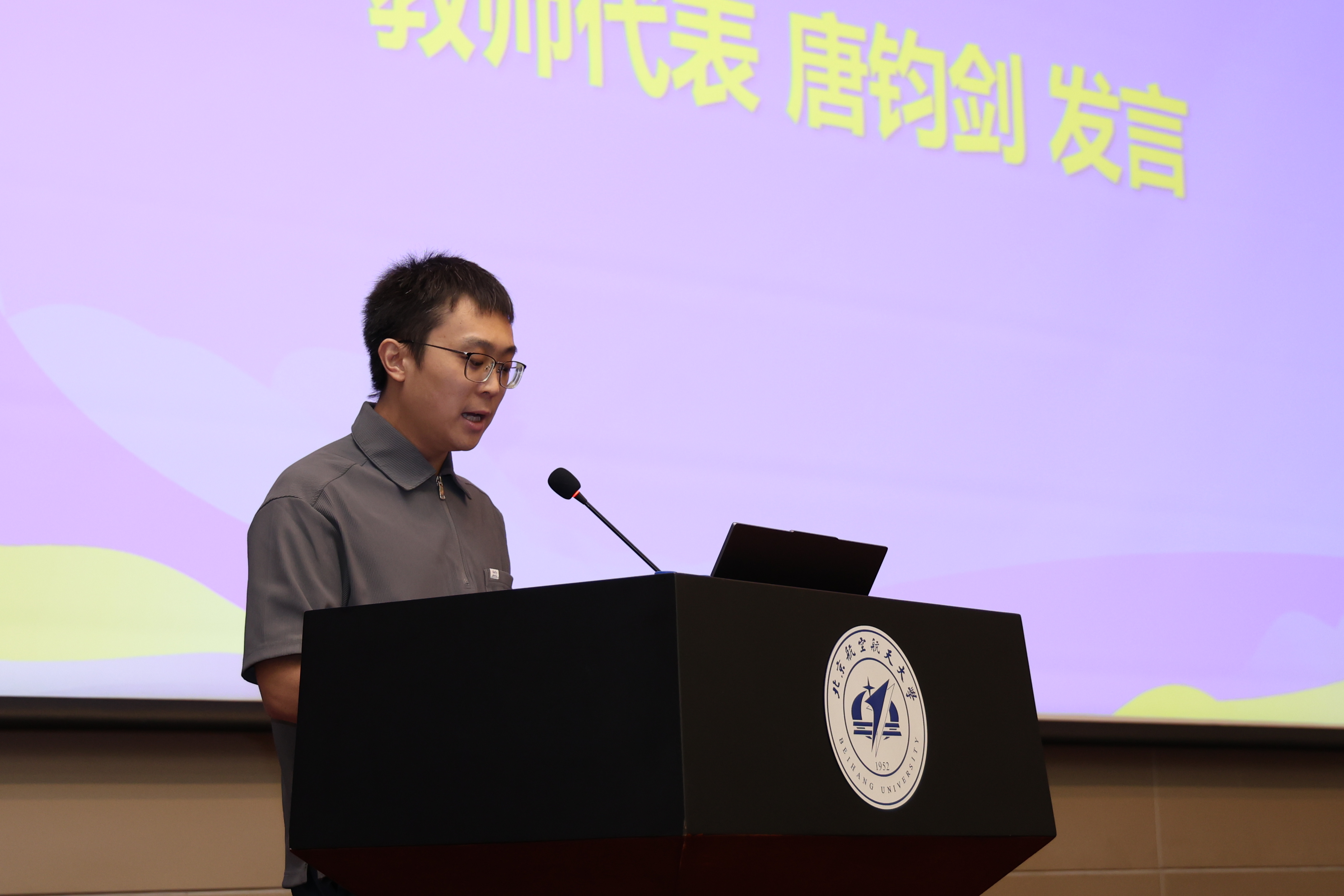 教师代表唐钧剑鼓励新生保持对学术的热情与好奇心,培养批判性思维和创新精神,在科研道路上勇于探索、追求卓越。
