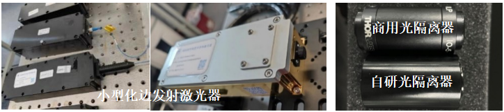 本研究方向针对量子传感技术创新中心研制阵列式芯片化原子自旋磁强计和芯片化核磁共振陀螺仪等量子传感系统对激光光源和激光测试的需求,研制小型化高性能半导体激光器、核心光学器部件、激光性能测试仪器等。目前研制的小型化边发射激光器已基本定型,用于阵列式芯片化原子自旋磁强计;研制的光隔离器和垂直腔面发射激光器驱动器的性能已优于国外商用产品,可实现替代。后续将进一步研制集成化、小型化、高性能的激光器和光学器部件,并研制激光波长计、线宽测试仪等激光测试仪器,支撑量子传感技术的研制和应用。